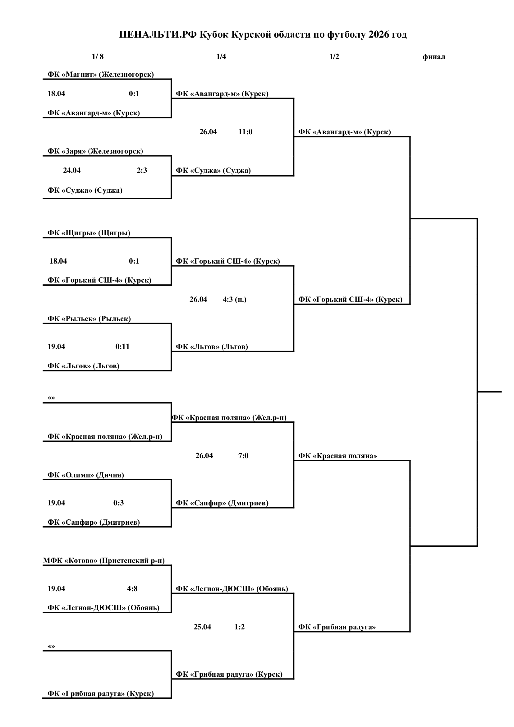 29 марта в Первенстве области по футзалу среди ветеранов 50+ состоялись матчи предпоследнего тура. А в последнем туре, через неделю, 5-гo апреля, в матче «Факел»-«Цветово» определится «бронзовый» призер», а в матче «Леонов» - «Русич-Черноземье» - победитель Первенства. Начало игр в спортивном зале ФОК школы бокса соответственно в 13 и 14 часов. 41. «Русич-Черноземье» - «Факел» 3-1 В.Волобуев, В.Мишаев, автогол; Ю.Поляков)