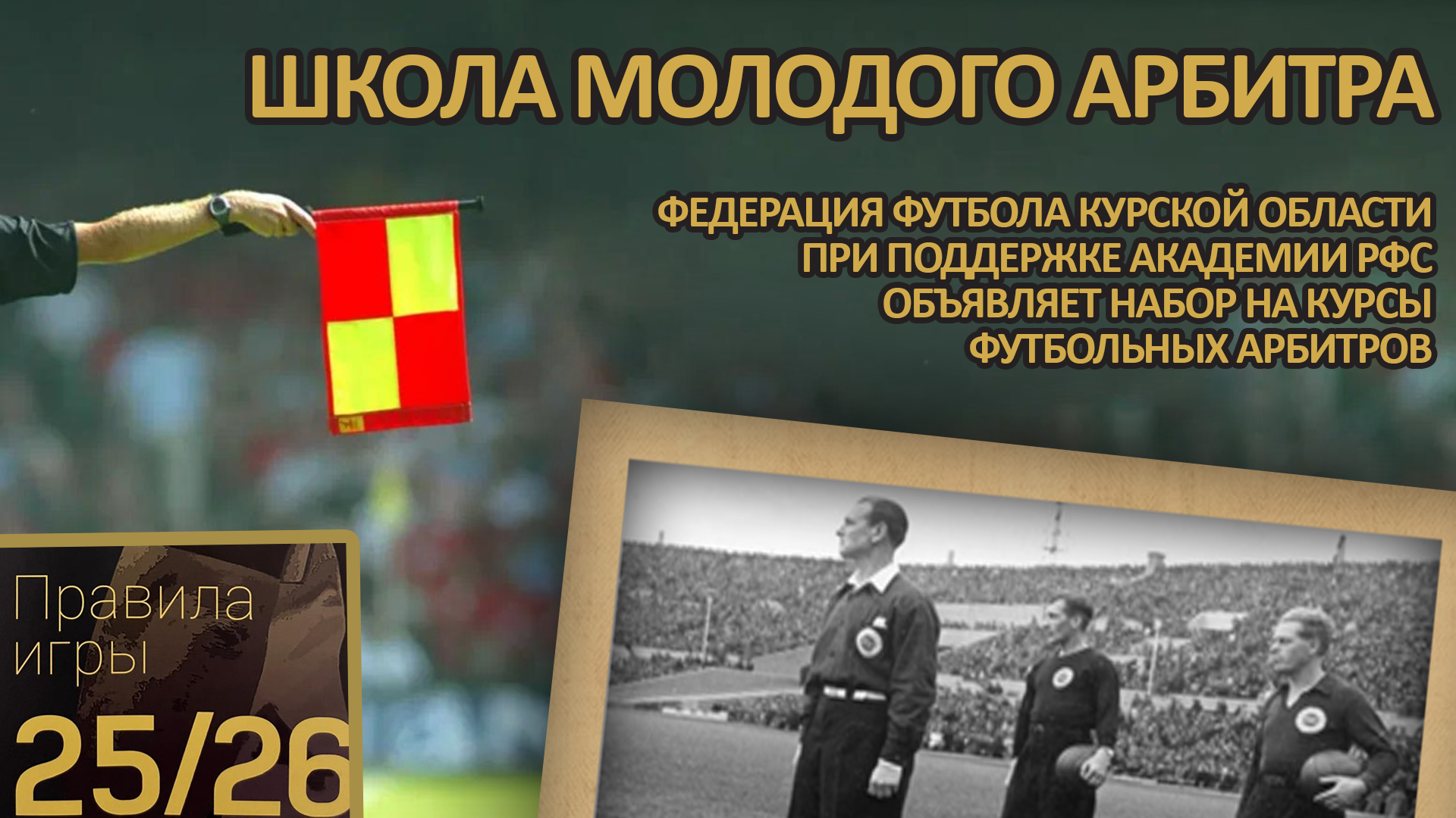 РОО "Федерация футбола Курской области" при поддержке Академии РФС объявляет о старте приема заявок на КУРСЫ ФУТБОЛЬНЫХ АРБИТРОВ!