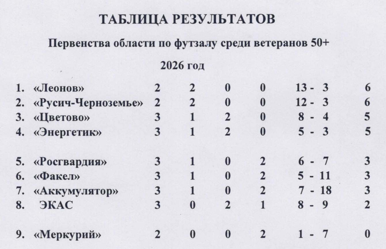 Результаты матчей 3-го тура Первенства области по футзалу среди ветеранов 50+, состоявшегося 25 января: